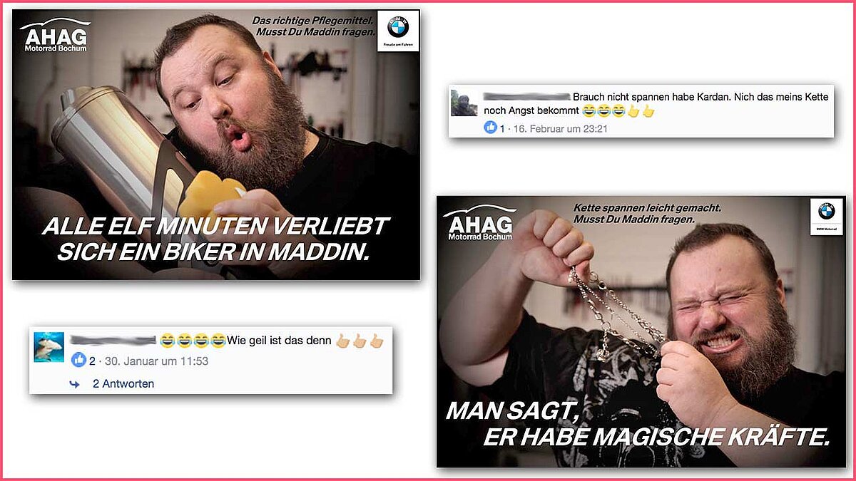 Wolfgang Hemstege ist Teil des Verkaufsteams beim BMW Motorrad-Vertragshändler AHAG in Bochum, kümmert sich nebenbei noch ums Marketing des Hauses. Derzeit macht der Händler, der in Coesfeld eine weitere Dependance betreibt, durch eine besonders pfiffig-schräge Kampagne auf seiner Facebookseite auf sich aufmerksam.