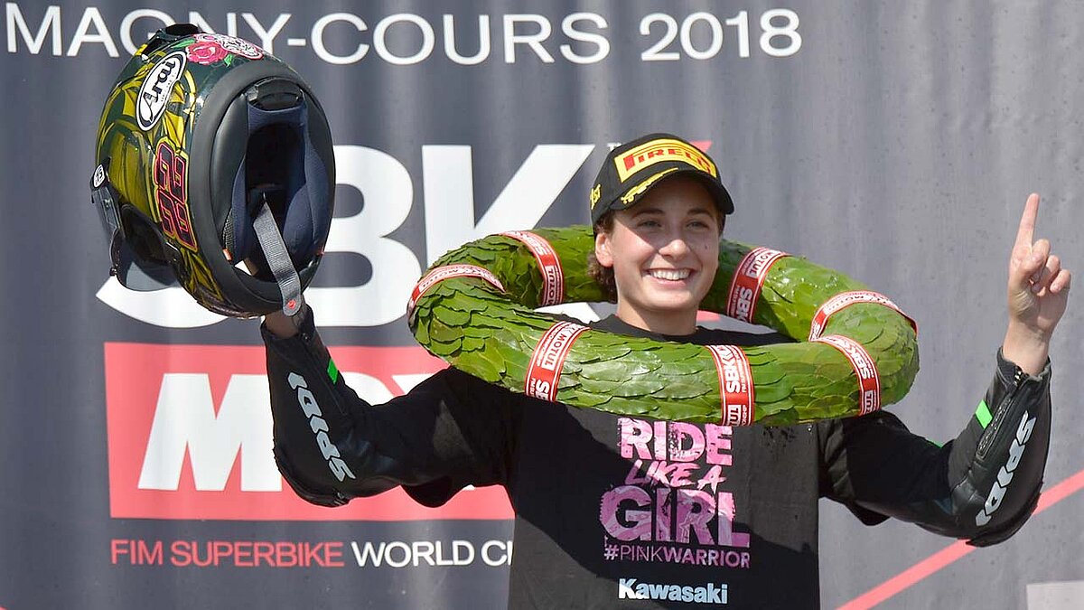Die 21-jährige Kawasaki Ninja 400-Fahrerin aus Murcia krönt sich beim Saisonfinale der Serie in Magny Cours zur neuen Supersport 300-Weltmeisterin.