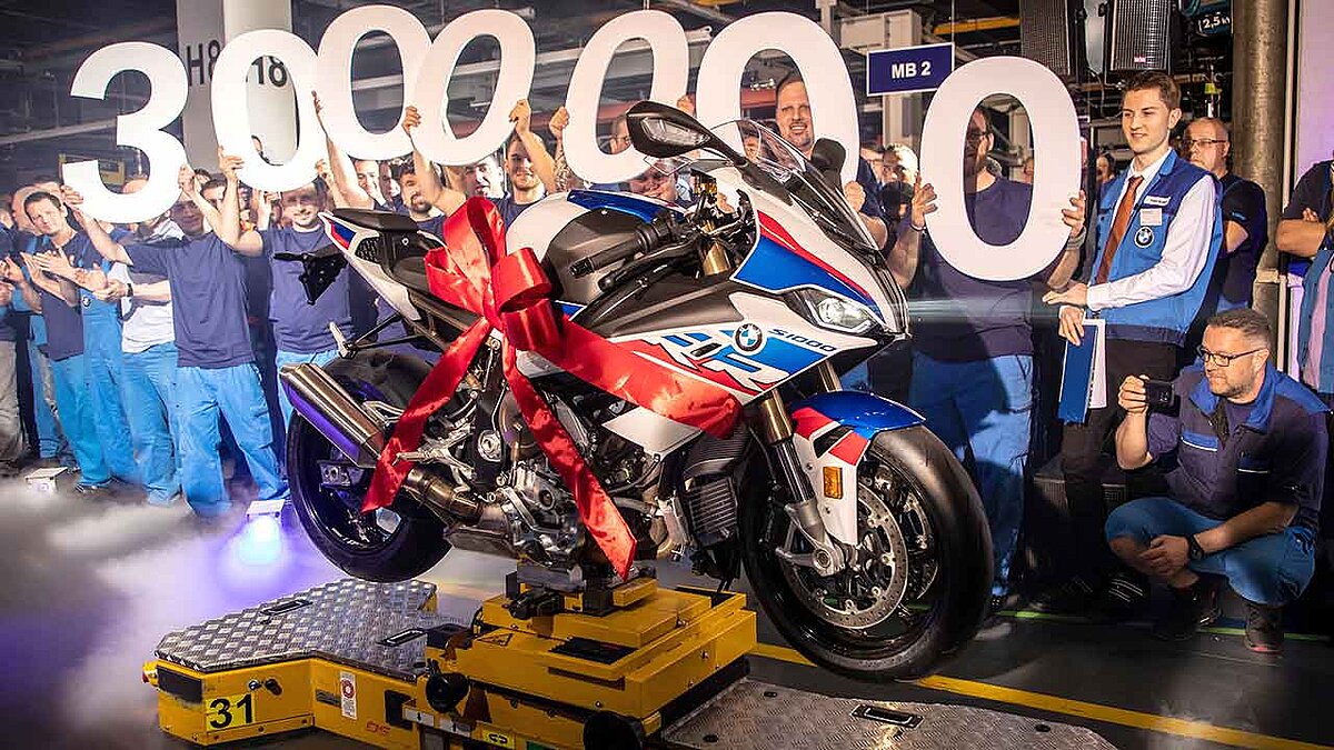 Das Jubiläumsfahrzeug, eine S 1000 RR, das aktuelle Superbike der Münchner, war gut gewählt. Die Maschine dient nämlich als Basis für die Werksmannschaft in der Superbike-WM. Die beiden Piloten des frisch formierten Teams, Tom Sykes und Markus Reiterberger, waren deshalb die passenden Ehrengäste des Jubiläums-Festakts. Für Dr. Markus Schramm, Leiter BMW Motorrad, war der Produktions-Meilenstein „das Ergebnis harter Arbeit und eines klaren Kurses, den Unternehmen, Belegschaft und Politik konsequent verfolgt haben“. In den vergangenen 50 Jahren habe BMW weitreichend in den Berliner Standort investiert und die Anzahl der Arbeitsplätze auf nun 2.100 fast versechsfacht.