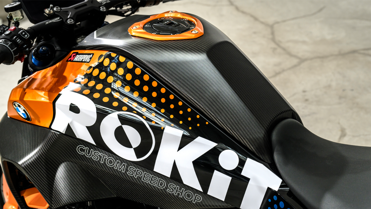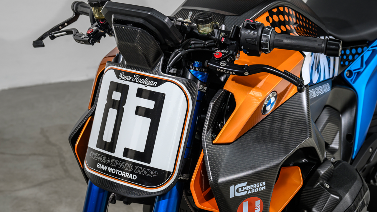 Dem hohen fahrdynamischen Anspruch des bis zu 275 km/h schnellen Custom Roadsters mit Superbike-Attitüde tragen schließlich das leichte und Handling-fördernde BMW M 1000 RR Carbon Vorderrad sowie eine Vielzahl leichter und gleichzeitig hochfester Carbon-Bauteile aus dem BMW Motorrad Programm sowie von Ilmberger Carbon Parts Rechnung. Voll einstellbare Handhebel aus dem Hause Advik sowie eine leichte und klangvolle Titan-Auspuffanlage mit Carbon-Endschalldämpfer von Akrapovič und gefräste BMW Motorrad Fußrasten runden das supersportliche Custom Roadster Projekt ab.