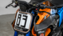 Reminiszenzen an Steve McLaughlins Sieg in Daytona vor 50 Jahren weckt dabei nicht nur die Startnummer 83 der Superhooligan, sondern auch die mit der damaligen BMW R 90 S Farbe versehenen Bauteile wie Vorderradkotflügel und Tankseitenverkleidungen. Korrespondierend dazu findet sich das Blau der BMW M 1000 RR Bremszangen auch am Aluminium-Rahmenheck sowie an den Standrohren der für mehr Schräglagenfreiheit um 30 mm verlängerten und voll einstellbaren Wilbers Upside-Down-Gabel wieder. Stimmig dazu ist auch die Feder des voll einstellbaren Wilbers Federbeins in Blau gehalten.