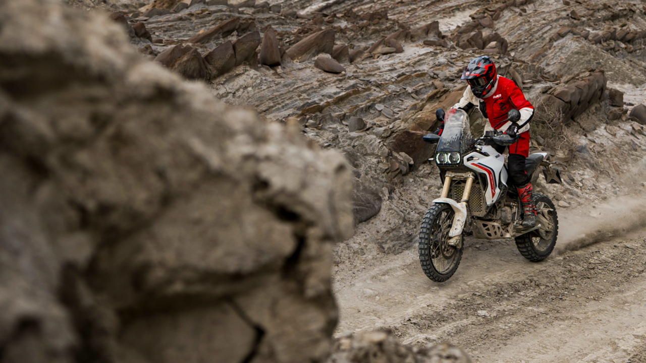 Das Ergebnis ist ein von Grund auf neu entwickeltes Motorrad mit unverwechselbarem Design, das sich im Alltag leicht fahren lässt und sowohl auf der Straße als auch im Gelände höchsten Fahrspaß bietet – dank effizienterer Federelemente sowie eines neuen, ergonomischeren und leichteren Kraftstofftanks. Die neue DesertX wurde konsequent rund um den neuen Ducati V2-Motor und den Monocoque-Rahmen konzipiert. Sie ist moderner, leistungsstärker und darauf ausgelegt, die fahrerischen Fähigkeiten jedes Einzelnen zu fördern – vom ambitionierten Enthusiasten bis hin zum Offroad-Profi.