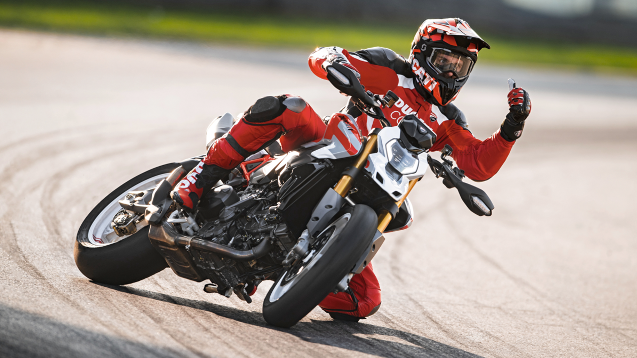 Das Ergebnis ist ein modernes, kompaktes und puristisches Motorrad, das auf den ersten Blick Leichtigkeit vermittelt. Mit einer Gewichtsreduzierung von 13 kg (14 kg für die SP) gegenüber der Vorgängerin 950 ist die neue Hypermotard V2 agiler und reaktionsschneller denn je. Gleichzeitig ist sie dank des 120 PS starken V2-Motors mit IVT-Steuerung und einem maximalen Drehmoment von 94 Nm, von denen 70 % bei 3.000 U/min zur Verfügung stehen, auch die leistungsstärkste Hypermotard und bietet eine hervorragende Beschleunigung aus Kurven heraus.
