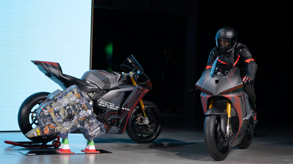Aus diesem Grund arbeitet das in Borgo Panigale ansässige Unternehmen im Rahmen seiner Forschungs- und Entwicklungsaktivitäten zusammen mit dem Volkswagen-Konzern an neuen Technologien zur Herstellung von Batteriepacks mit höherer Energiedichte. Am 8. September wurde auf der IAA Mobility in München der erste Prototyp einer V21L mit Festkörperbatterien von QuantumScape vorgestellt, der in Zusammenarbeit mit Audi und PowerCo entwickelt wurde. Dieses Motorrad stellt einen ersten Schritt in der Entwicklung dar und bestätigt Ducatis kontinuierliche Forschung an alternativen Technologien zum Verbrennungsmotor.