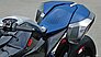 Viele Gedanken hat man sich bei BMW um das Thema Stauraum gemacht. Das Doppelkoffer-System der „Concept 9cento“ bietet nicht nur Platz für Gepäck, sondern soll gleichzeitig die Sitzfläche für den Sozius erweitern. Bei Bedarf werden die Seitenkoffer BMW zufolge von oben eingehängt, während ein starker Elektromagnet im unteren Bereich des Heckträgers das Element fixiert. Auch die von LED-Technik dominierte Lichtanlage des Bikes setzt auf Hightech-Elemente, darunter kompakte LED-Linsen für Abblend- und Fernlicht.