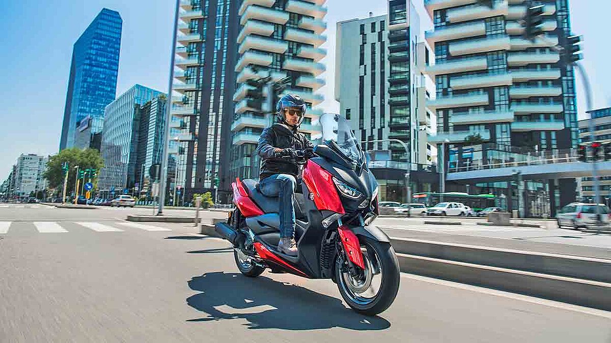 Auch in Sachen Alltagstauglichkeit hat der X-Max zugelegt: Verkleidungsscheibe und Lenker sind einstellbar, in einem der vorderen Staufächer gibt’s eine 12-V-Steckdose, mit der man während der Fahrt elektrische Geräte aufladen kann. Außerdem hat der Yamaha-Scooter eines der größten Helmfächer seiner Klasse, in das laut Hersteller zwei Vollvisierhelme passen und das obendrein noch beleuchtet ist. Wem dieser Stauraum nicht ausreicht, kann über das Yamaha-Zubehörprogramm noch ein Topcase ordern.