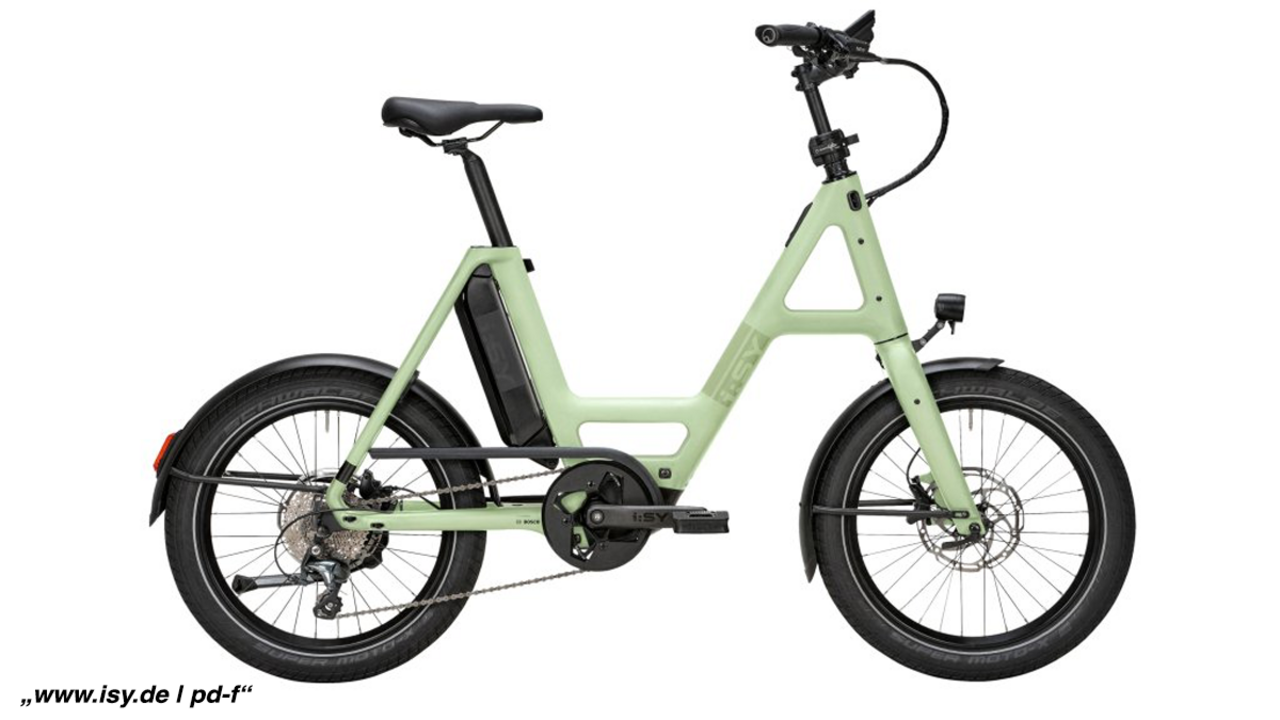 Sehr leicht und sehr wendig – so lassen sich die Vorzüge des „Skyfly S10“ von I:sy (UVP: 4.999 Euro) zusammenfassen. Das E‑Kompaktbike ist in Hellgrün erhältlich, rollt auf 20-Zoll-Rädern und ist mit einem Bosch-Performance-Line-SX-Antrieb ausgestattet. Für platzsparendes Parken lassen sich Lenker und die Pedale drehen bzw. wegklappen. Im Carbonrahmen ist ein Schnellspanner integriert, mit dem man im Handumdrehen die Sitzhöhe anpassen kann, sodass mehrere Familienmitglieder das Bike problemlos nutzen können.