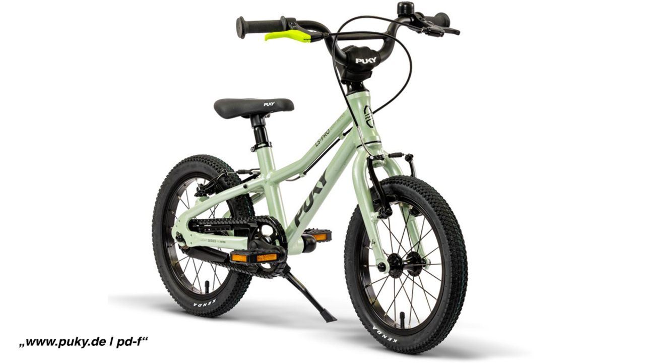 Kinder, die mit Rutschfahrzeugen und auf Laufrädern unterwegs waren, lernen ruckzuck Fahrradfahren. Das mintgrüne, 5,3 Kilogramm leichte „LS-Pro 14“ (UVP: 399,99 Euro) des Herstellers Puky mit Sitz in Wülfrath bietet für Kinder ab 95 Zentimetern Körpergröße dafür den idealen Einstieg. Ausstattung und Geometrie sind auf ihre Bedürfnisse ausgelegt, etwa mit vielen Einstellmöglichkeiten für Lenker und Vorbau, farblich gekennzeichneten Bremshebeln, die wenig Kraft benötigen oder einer niedrigen Überstandshöhe, die das Auf- und Absteigen erleichtert.
