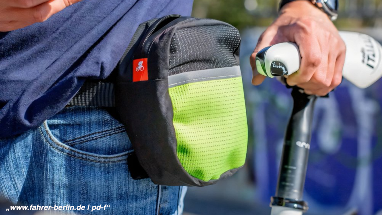Fahrer Berlin stellt Zubehör für Fahrräder und E‑Bikes her: von Spanngurten, Hosenbändern, Taschen, bis hin zu Akku-Schutzhüllen und Smartphonehaltern. Soweit es möglich ist, setzt das kleine, inhabergeführte Unternehmen bei der Herstellung auf gebrauchte Materialien. Das ist beispielsweise bei den Taschen der Fall. So entstehen aus Lkw-Planen, Bootspersenningen oder Werbebannern immer wieder Unikate in allen Farben – zum Beispiel der „Komplize“ (49 Euro), eine handgefertigte Tasche, die man sowohl als Lenker‑, Rahmen- und Umhängetasche nutzen kann.