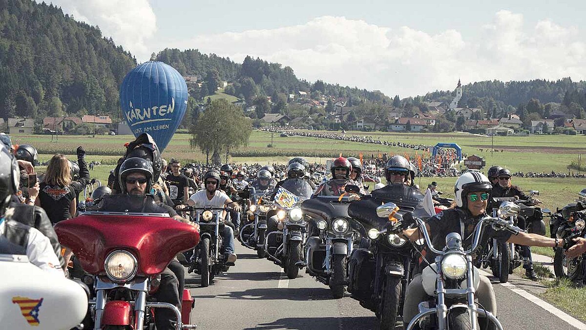 Das Village bildet auch den Ausgangspunkt für geführte Touren in das Kurveneldorado der umliegenden Alpenregion. Und die große Bike-Parade wird traditionell von Tausenden Kärntnern bejubelt.