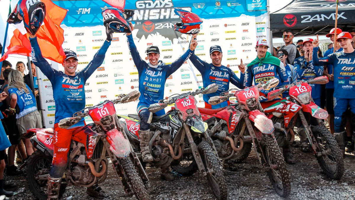 Wie schon beim World Trophy-Sieg 2021 auf heimischem Boden hat Italien auch die 6DAYS® Italia in Bergamo gewonnen. Nach dem fünften Tag mit einem uneinholbaren Vorsprung im diesjährigen World Trophy-Wettbewerb genoss Italien während des heutigen Final Cross Tests eine Siegesparade und beendete die 6DAYS® FIM Enduro of Nations als Gesamtsieger.