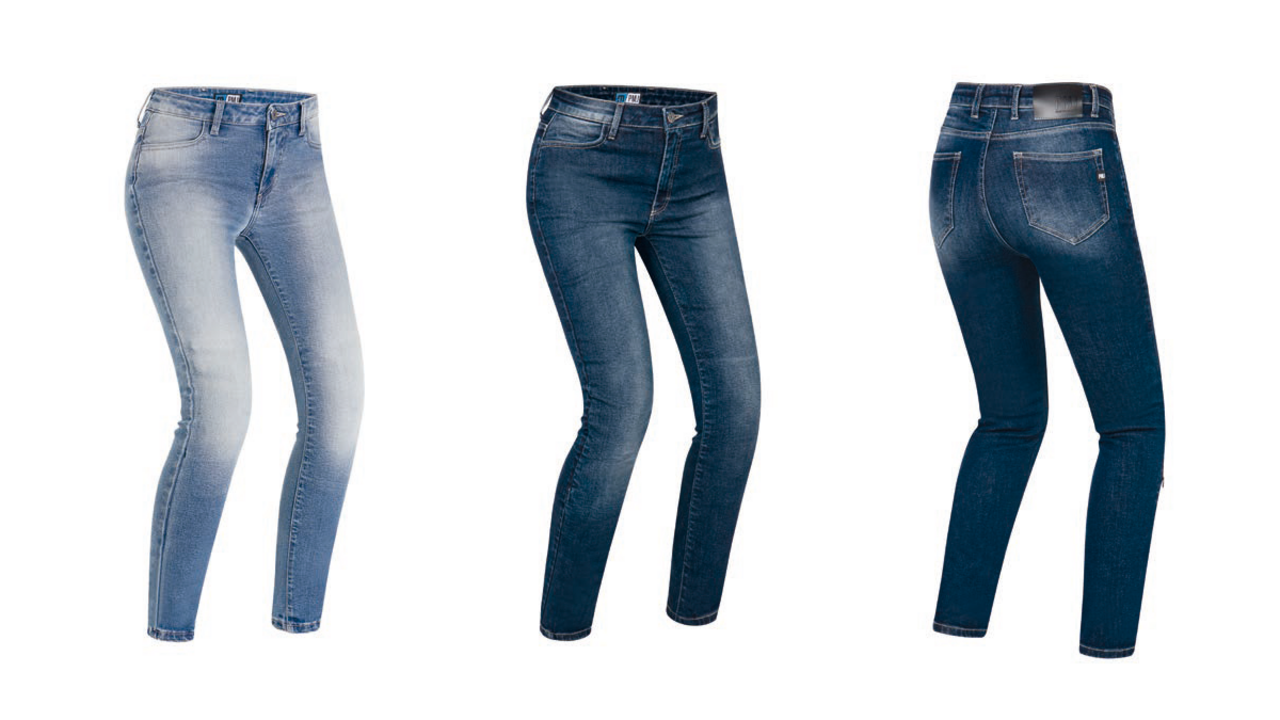 Werfen wir einen intensiveren Blick auf die letzteren Beiden. Ginevra und Electra fertigt PMJ in Single-Layer-Technologie. Ihr Stoff besteht aus einer einzigen Lage, in die sowohl Denim als auch schützende Fasern eingearbeitet sind. Das kommt dem Gewicht, dem Tragekomfort sowie der Bewegungsfreiheit zugute und ermöglicht zugleich den lässigen Look von Freizeitjeans, wenngleich es sich um besonders sichere Motorradhosen handelt: Sie wurden entsprechend der Klasse AA für persönliche Schutzausrüstung zertifiziert. Zu dem hohen Maß an Sicherheit tragen neben den verwendeten Materialien die bei PMJ üblichen CE-geprüften Knie- und Hüftprotektoren bei, die der Europanorm 1621-1.2012 entsprechen.