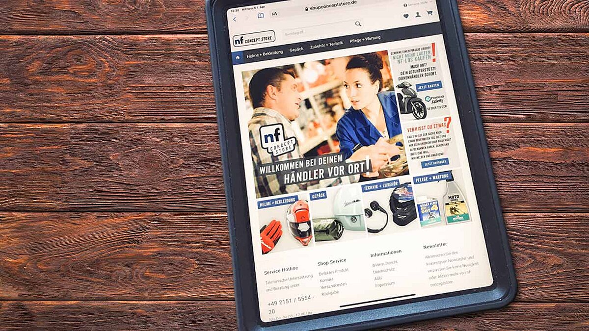 Als Soforthilfe für den Fachhandel haben die Krefelder deshalb den so genannten nf-conceptstore gestartet – in Rekordzeit, wie man betont. Die Idee dahinter: Der Händler kann seine Kunden mit Hilfe eines vorgefertigten Textes zu einem Besuch im nf-conceptstore einladen und den Kunden durch einen händlerbezogenen Login an sich binden. Im nf-conceptstore würden dem Endverbraucher die Beratungskompetenz und die für die Fahrzeugsicherheit wichtigen Serviceleistungen seines Fachhändlers noch einmal verdeutlicht, heißt es. Mit der Nutzung des Onlinestores profitiere der Endverbraucher davon, dass er im Auftrag seines Händlers über Nacht direkt aus einem der größten Lager Europas beliefert werden könne. Und der Kunde habe einen Zusatznutzen und Anreiz: Mit dem Kauf eines „Sponsor-Loses“ zum Preis von 5 Euro könne er seinen Händler direkt unterstützen und mit etwas Glück eine Piaggio Liberty gewinnen.
