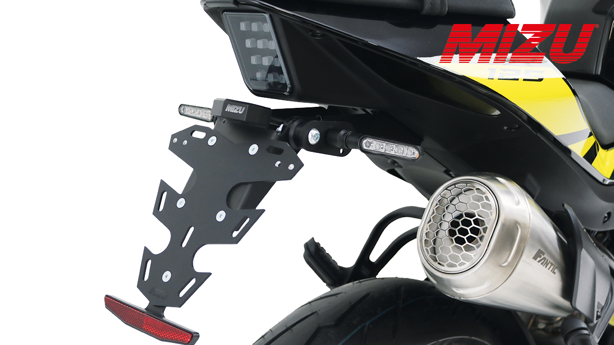 Die neuen MIZU Kennzeichenhalter der Fly-Serie sowie Tieferlegungen werten verschiedene Modelle sportlich und unverwechselbar auf. Mit seinem minimalistischen, sportlichen Design ersetzt der MIZU Kennzeichenhalter der Fly-Serie den oft wuchtigen Serienhalter bei der Fantic 125 Stealth Bj. 2024/25 und sorgt für ein modernes, dynamisches Heck. Jeder Halter wird aus hochwertigem, stabilem Aluminium gefertigt und ist schwarz-matt eloxiert - nicht nur optisch ein Highlight, sondern auch besonders langlebig. Neben dem eleganten Design bietet der Halter praktische Features wie ein verstellbarer Neigungswinkel, eine deutlich spürbare Gewichtsreduktion gegenüber Originalteilen sowie die Kompatibilität mit Zubehör- oder Originalblinkern. Für maximale Sicherheit und gesetzeskonforme Nutzung sind sowohl eine MIZU-Kennzeichenbeleuchtung mit E-Nummer als auch ein Reflektor mit E-Kennzeichnung im Lieferumfang enthalten. Die Kennzeichenplatte ist mit Nummernschildern aus Deutschland, Österreich, Italien sowie Slowenien kompatibel.