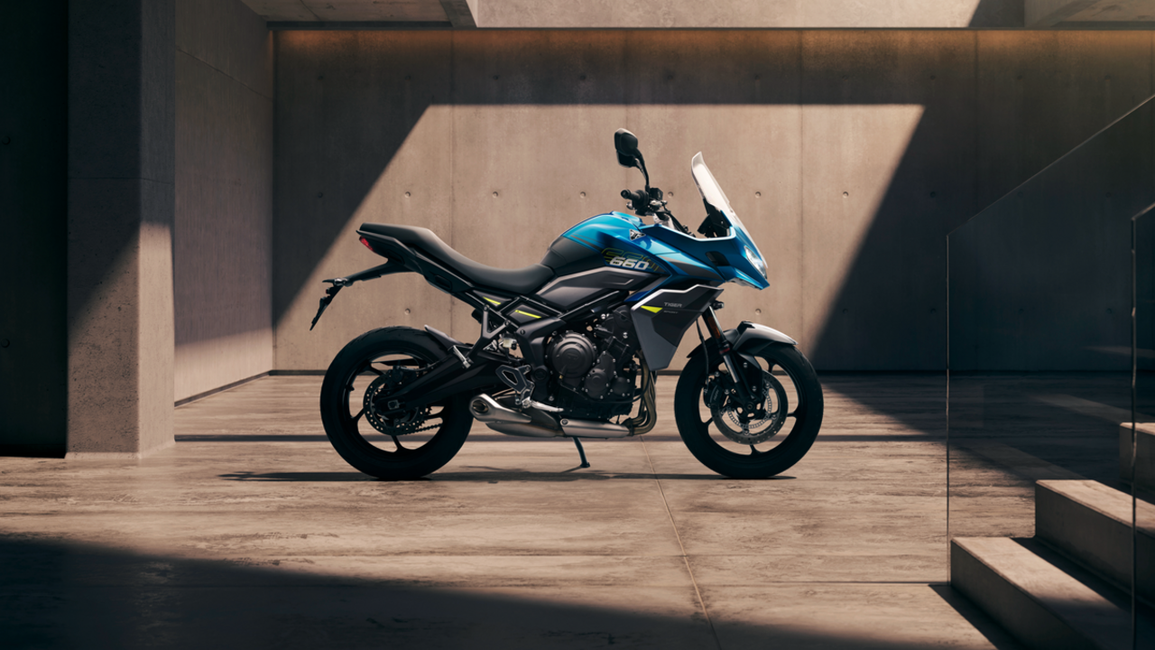 Die neue Tiger Sport 660 kombiniert gesteigerte Leistung, agiles Handling, bessere Touring-Fähigkeit und fahrerorientierte Technologie mit geringen Unterhaltskosten, etabliert sich als ultimativer Mittelklasse-Allrounder.