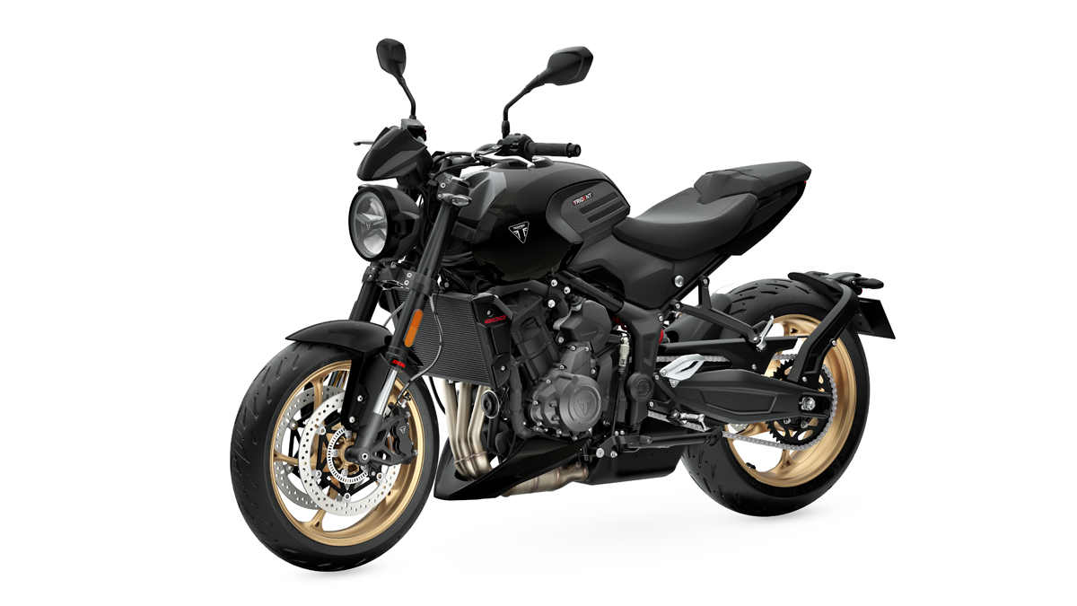 Mit einer Leistung von 115 PS bei 10.750 U/min und einem maximalen Drehmoment von 84 Nm bei 8.500 U/min wird der süchtig machende Antrieb des Dreizylinders im mittleren Drehzahlbereich von einem tiefen Ansauggeräusch durch die drei Drosselklappen begleitet, das durch die neu gestaltete Airbox und das Ansaugtrichtersystem verstärkt wird, um den Luftstrom und den Ansauggeräusch zu optimieren. Das Ergebnis ist ein tiefes, kerniges Knurren unter Last und das unverkennbare Heulen des Triumph-Dreizylinders bei hohen Drehzahlen. Im Inneren verfügt der Motor über eine gedrehte Kurbelwelle, eine einzigartige Nockenwelle und einen Ausgleicher, geschmiedete Pleuelstangen und Hochdruckkolben, die alle auf maximale Leistung und Langlebigkeit ausgelegt sind.